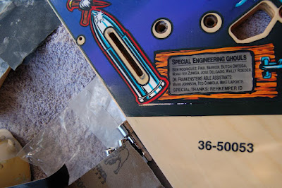 Bestemte meg for å jobbe litt på Monster Bash playfielden og prøve å ta noen fler bilder under denne prosessen, playfielden har endel inserts som trenger litt TLC. Denne hadde også inserts som hadde reist seg litt slik at disse ble varmet opp og resatt tilbake.